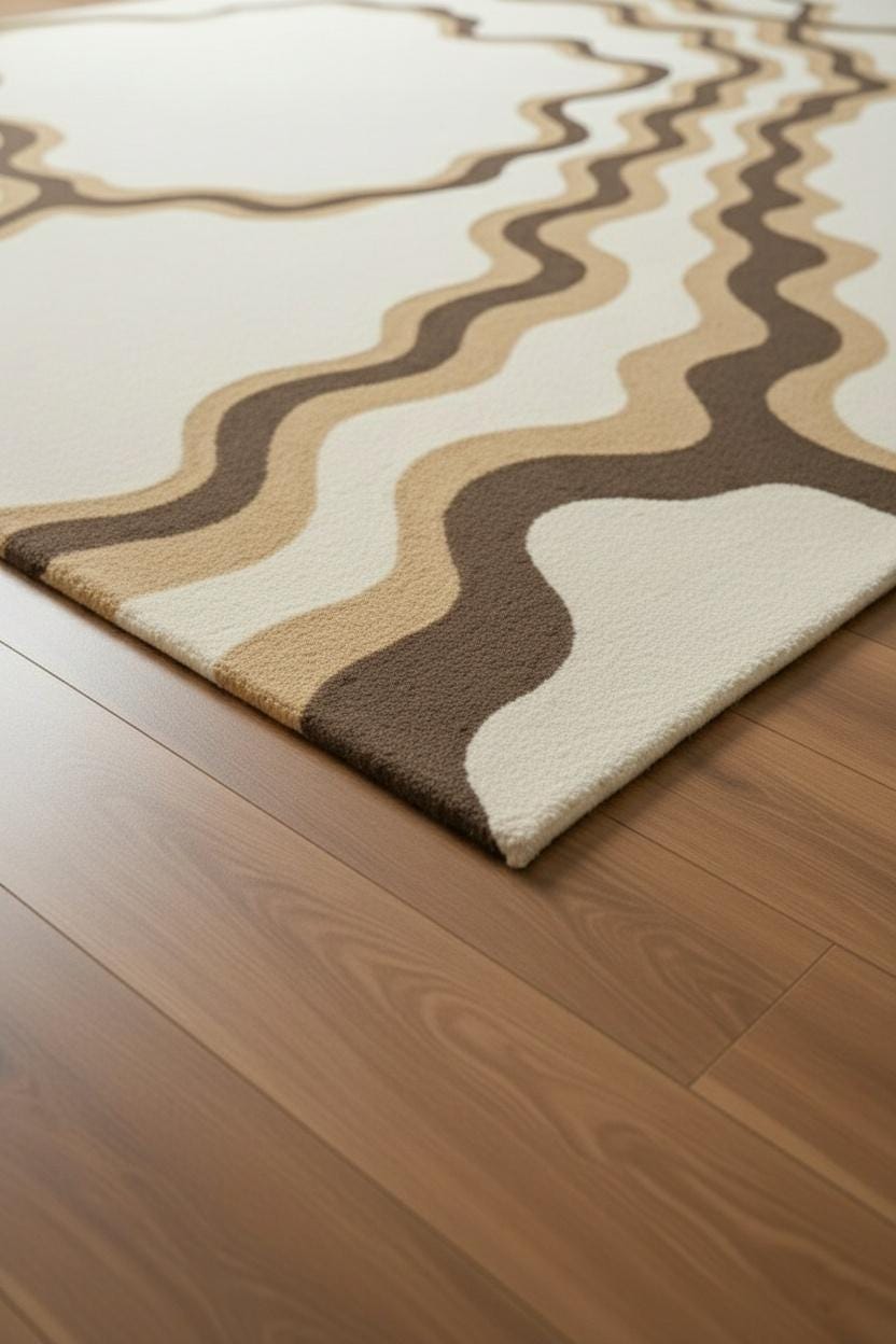Beige Wave Pattern Area Rug – Modern Coastal Style
