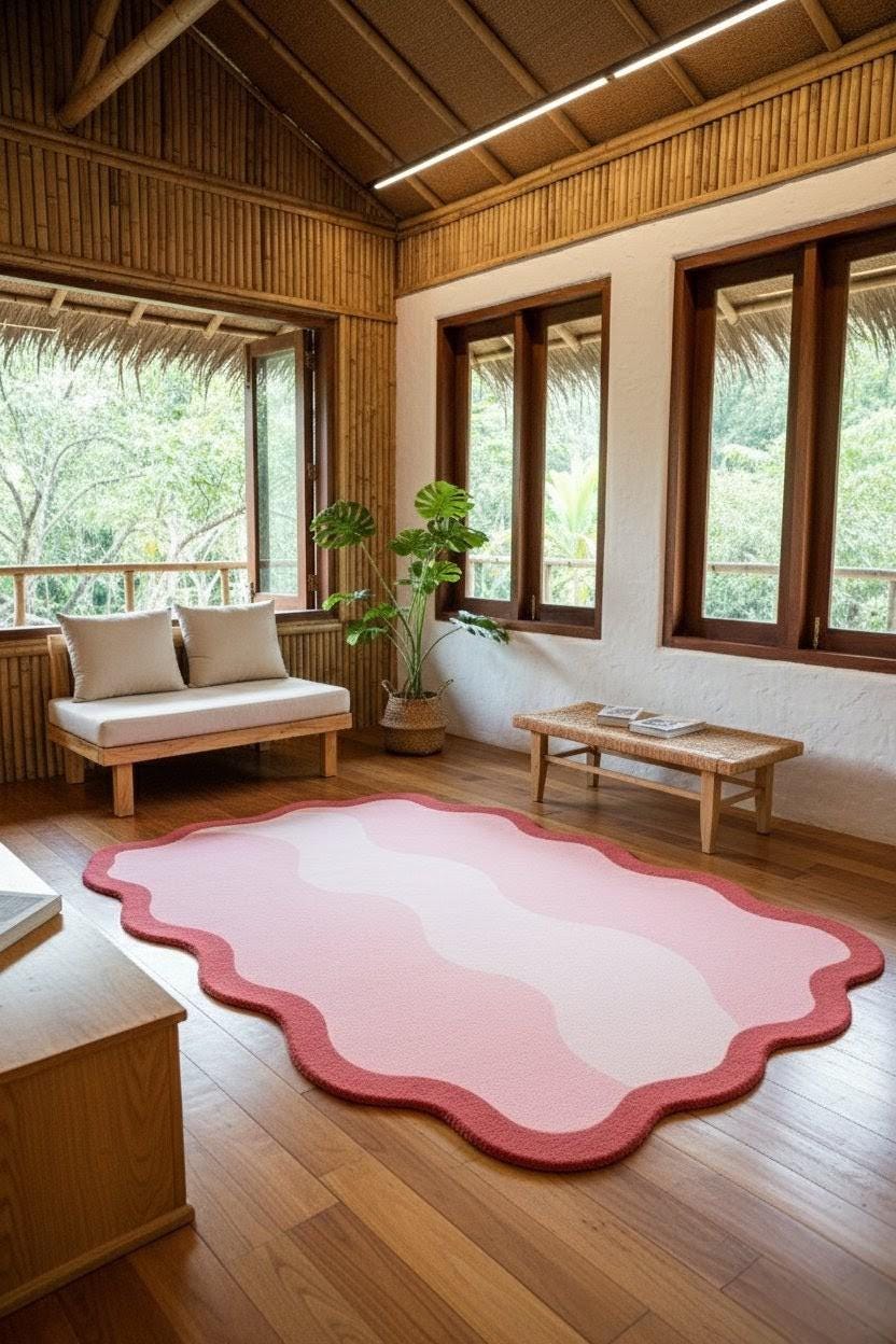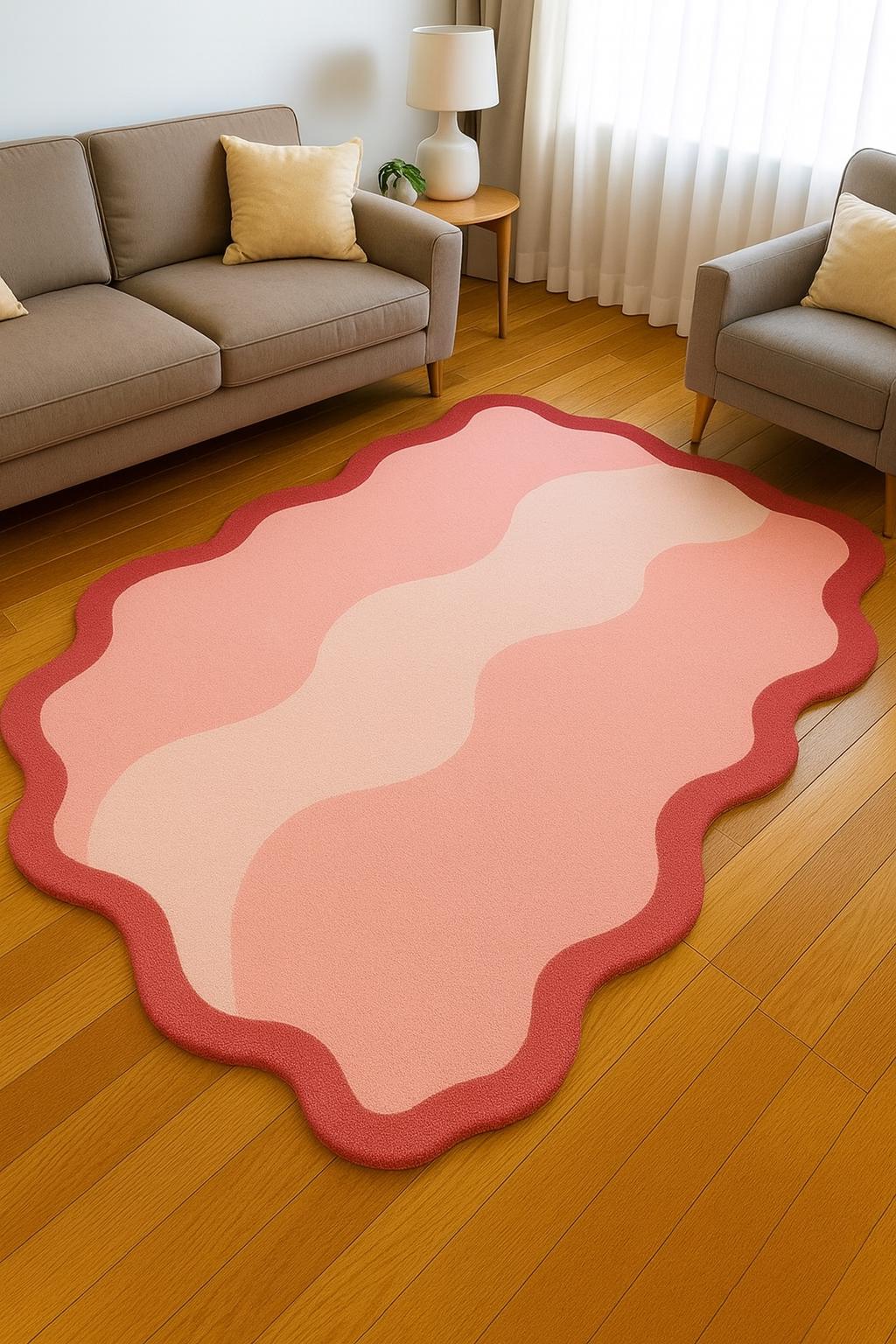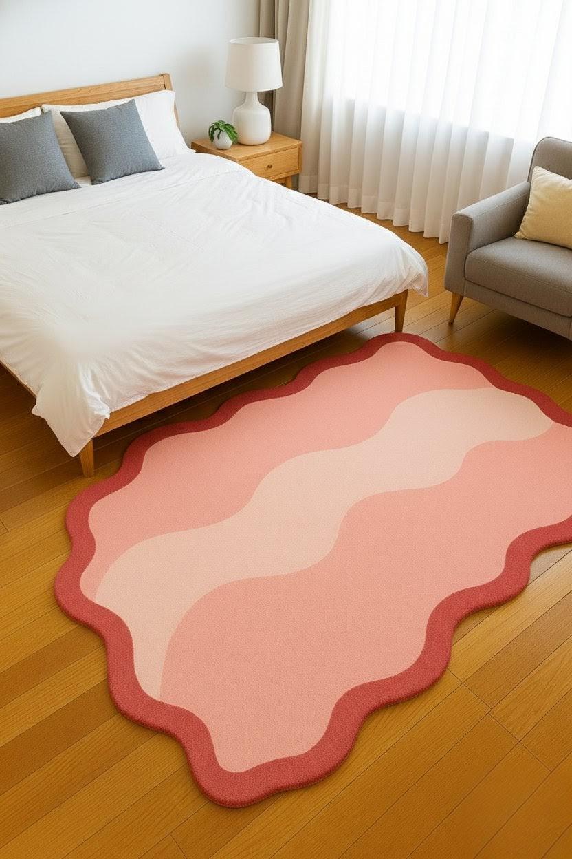 Wavy Pink Abstract Rug Aesthetic Irregular Shape Carpet for Living Room Bedroom Soft Modern Area Rug Cute Pastel Decor Custom Size Accent 💫
