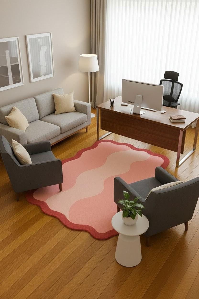 Bring a touch of softness and modern aesthetic into your home with this beautiful Wavy Pink Abstract Rug. Designed with gentle curves and layered pastel tones, this carpet instantly brightens any space while adding warmth, comfort, and personality. Its unique irregular shape makes it stand out from ordinary rugs — perfect for anyone who loves cozy, stylish, and artsy home décor.💫