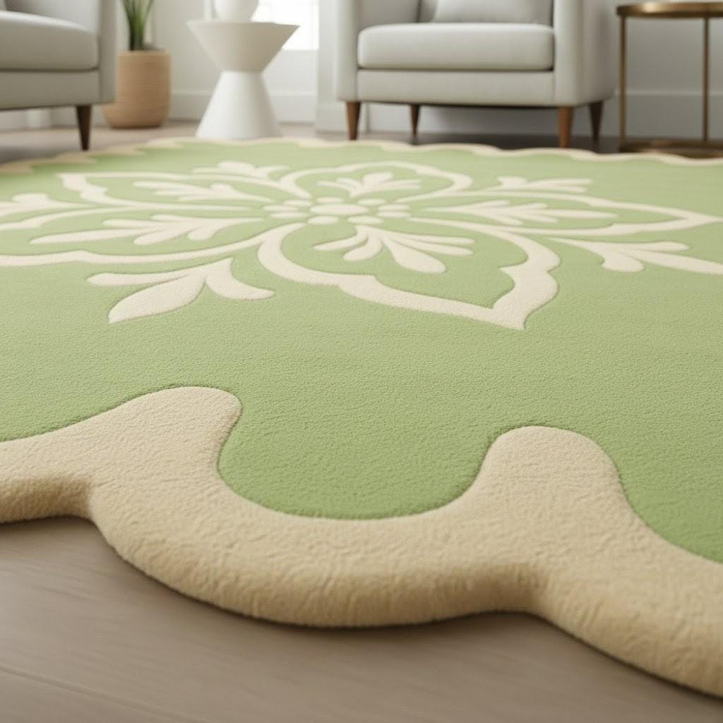 Handcrafted Green Floral Scallop Rug | Soft Accent Carpet for Living Room, Bedroom Dining | Modern Aesthetic Home Decor by cozy Carft RUGS