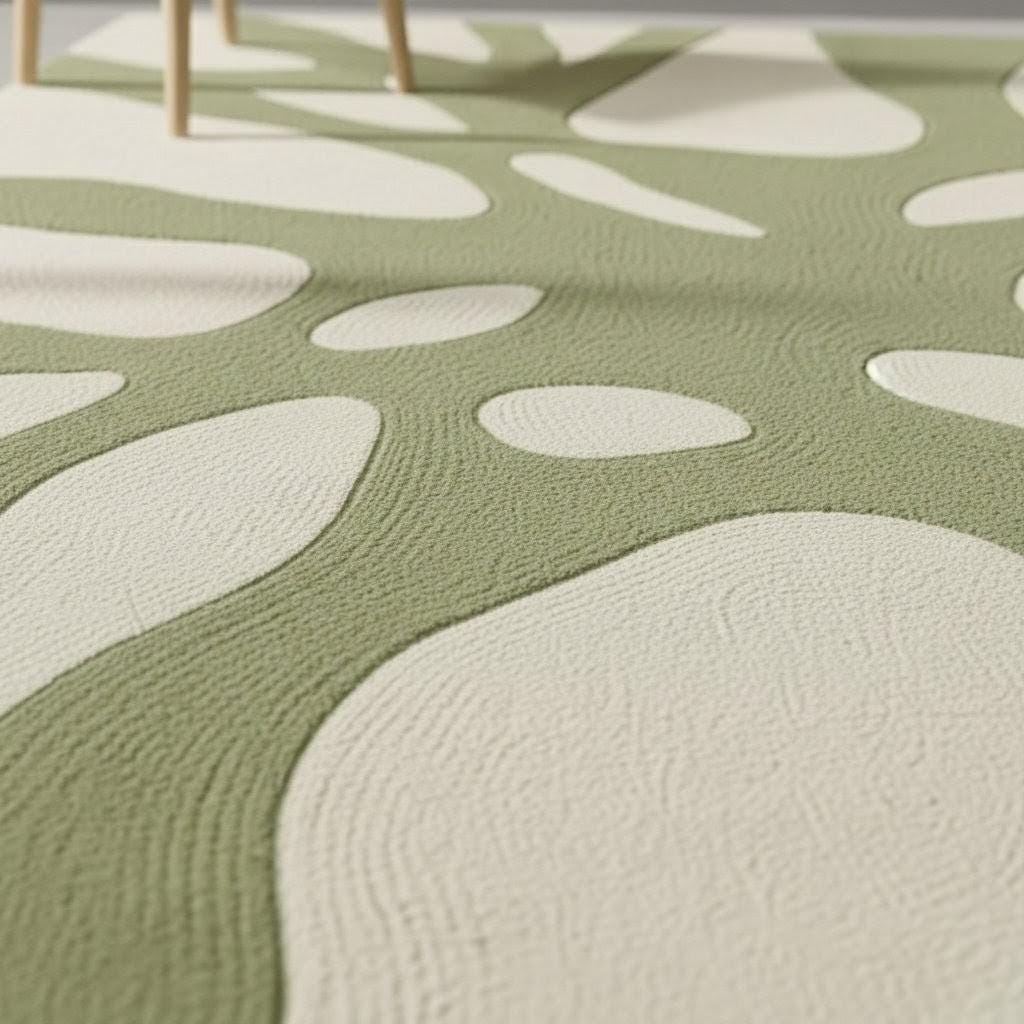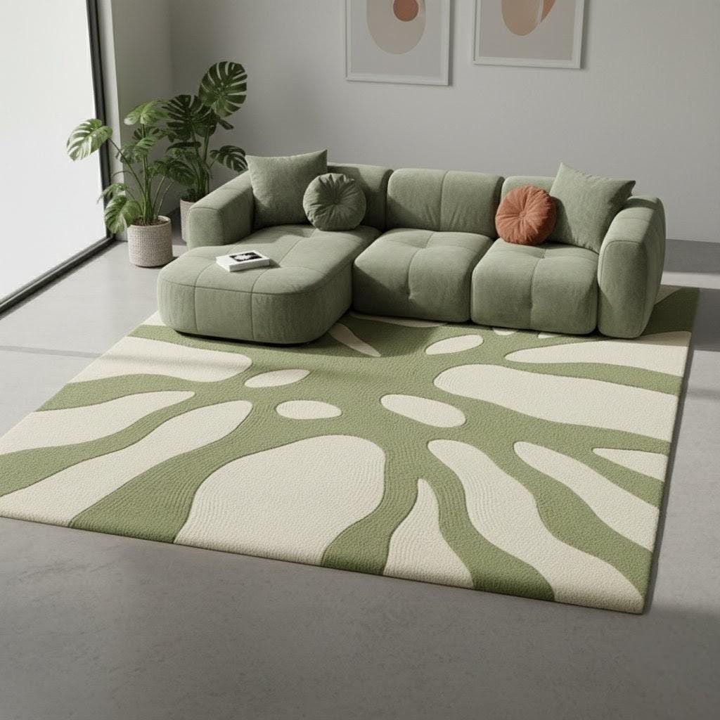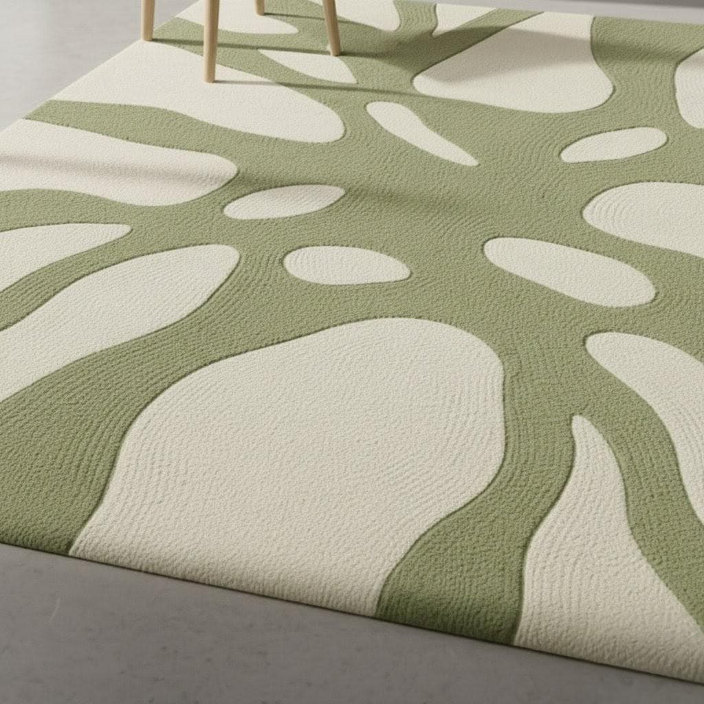 Transform your space with this modern abstract area rug, designed to bring a calm, natural aesthetic into any home. Featuring a soothing green and cream botanical-inspired pattern, this rug blends beautifully with minimalist, Scandinavian, boho, or contemporary interiors.