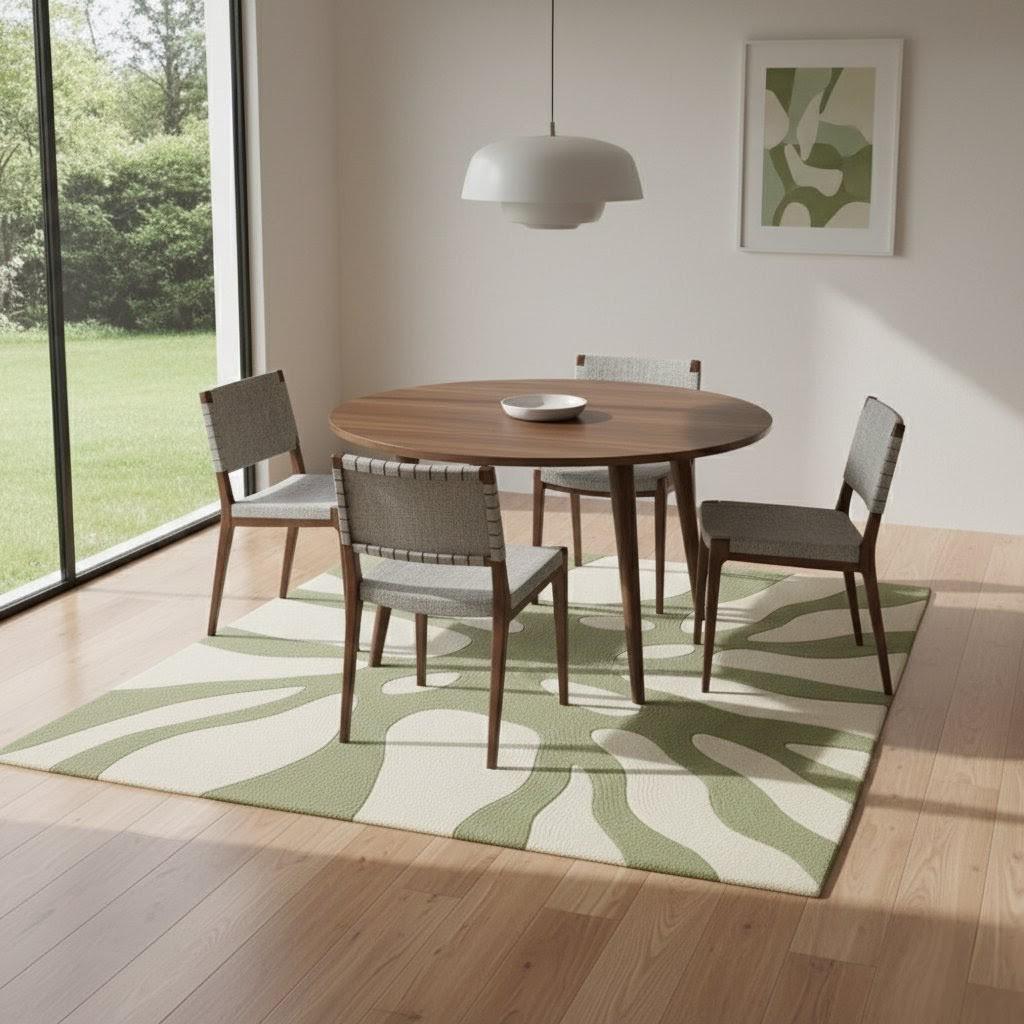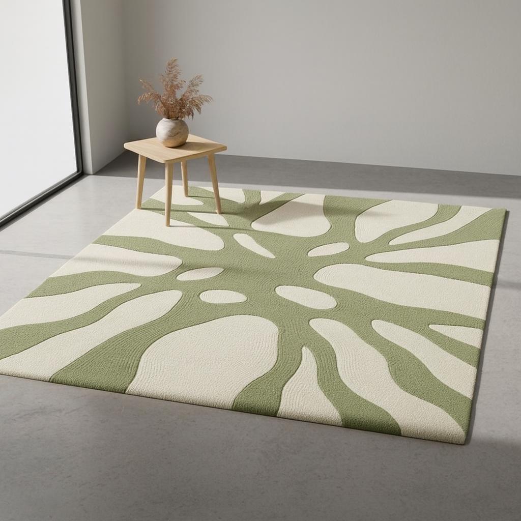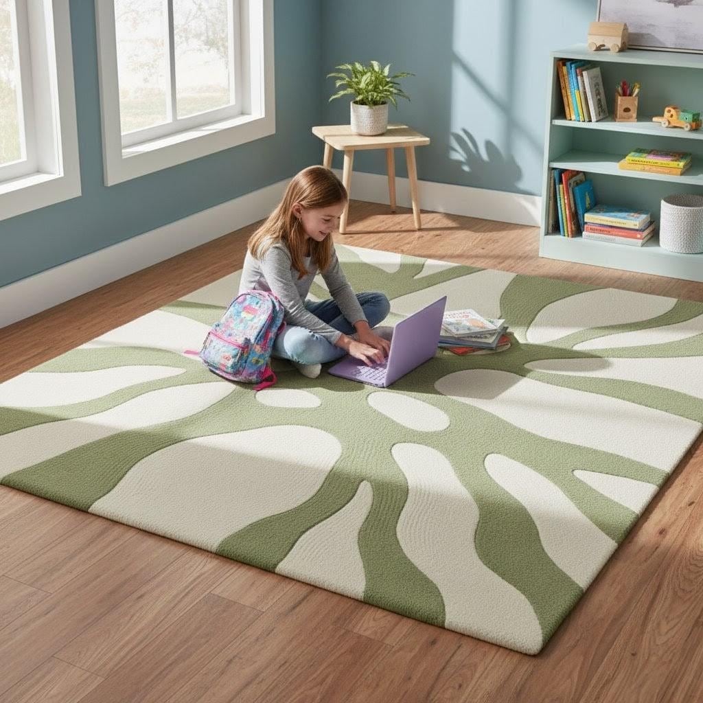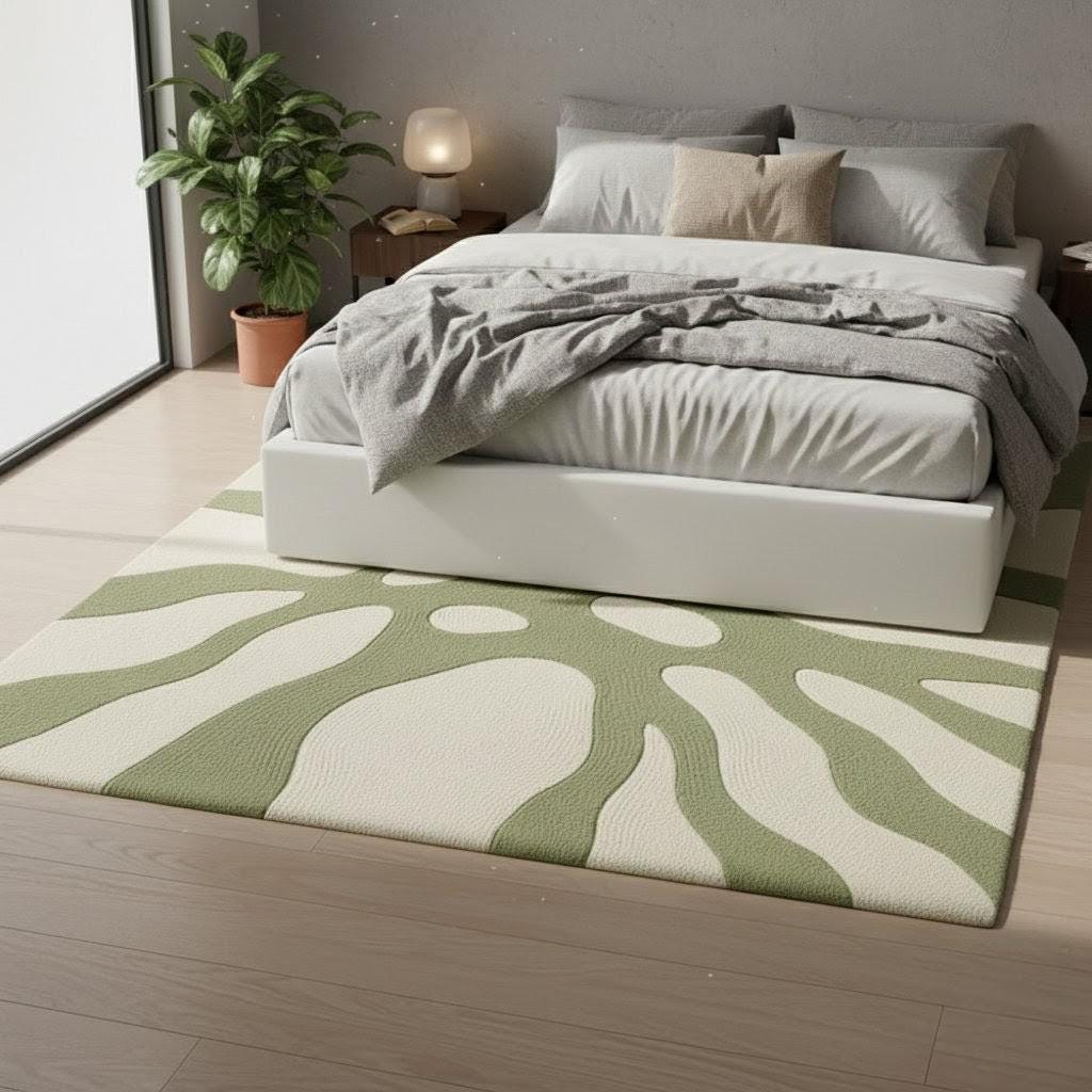 Transform your space with this modern abstract area rug, designed to bring a calm, natural aesthetic into any home. Featuring a soothing green and cream botanical-inspired pattern, this rug blends beautifully with minimalist, Scandinavian, boho, or contemporary interiors.