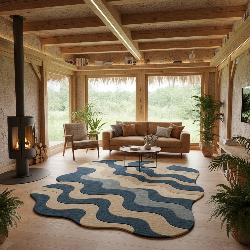 Hand-Tufted Wool Area Rug | Modern Ocean Wave Design