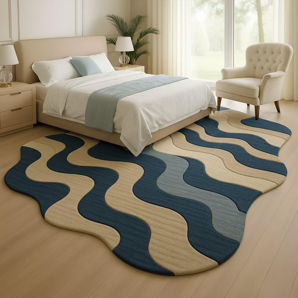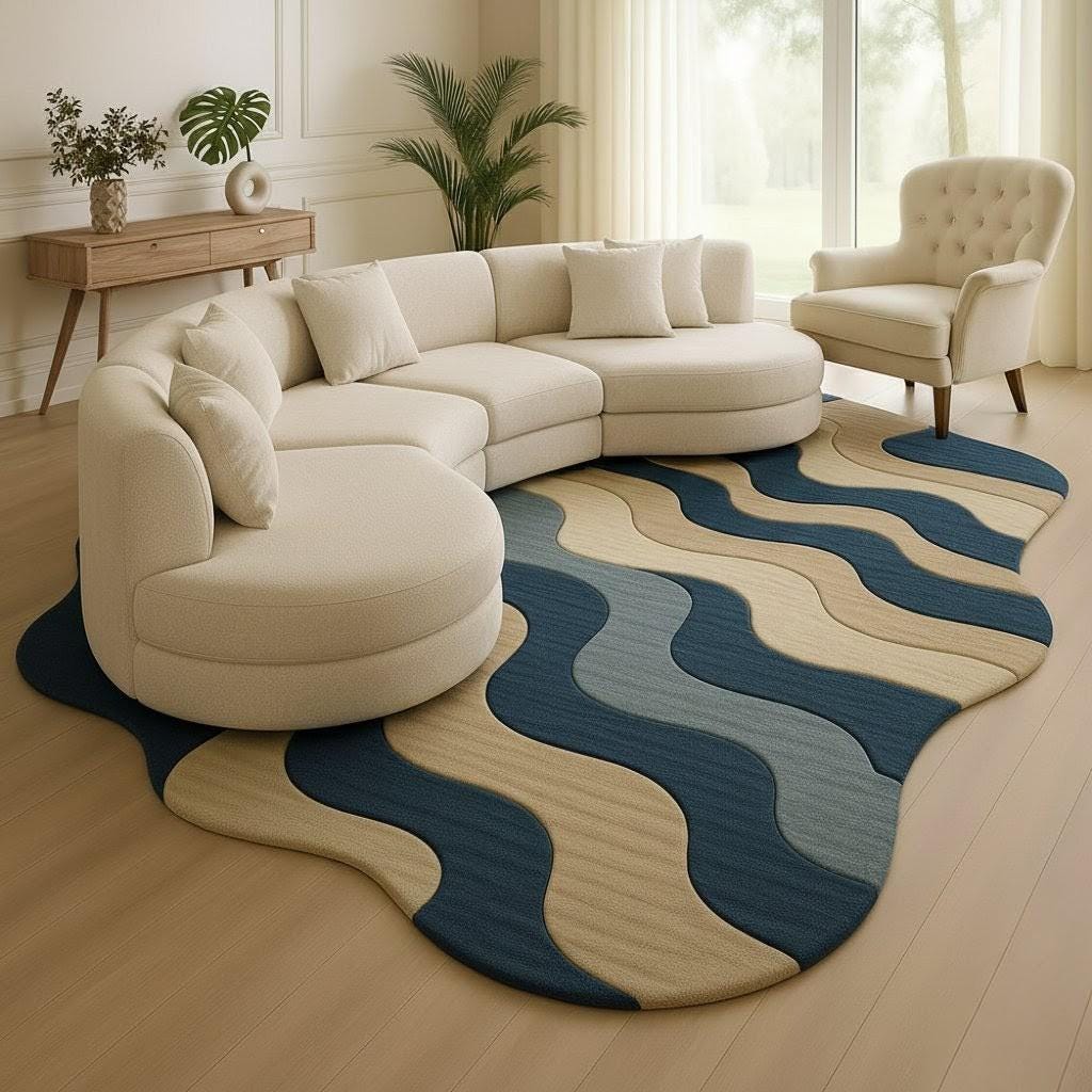 Modern Wavy Area Rug | Ocean Wave Design Carpet Soft Living Room Bedroom Floor Rug | Unique Irregular Shape Accent Rug by cozy Carft RUGS