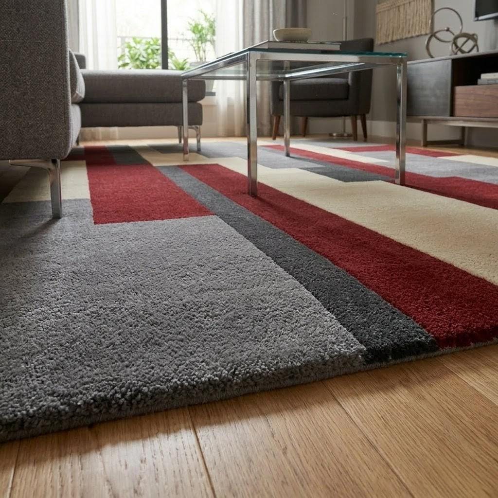 Geometric Area Rug Modern Hand Tufted Wool Red Gray Cream Abstract Luxury Living Room Rug Soft Plush Carpet Custom Size 8x10 9x12