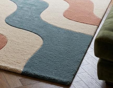 Mid Century Modern Abstract Rug, Hand Tufted Wool Area Rug, Beige Blue Terracotta Living Room Rug, Wavy Pattern Carpet Custom Size