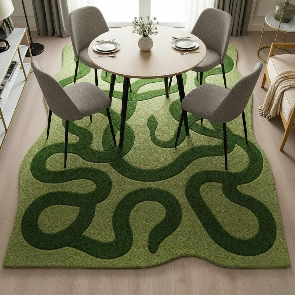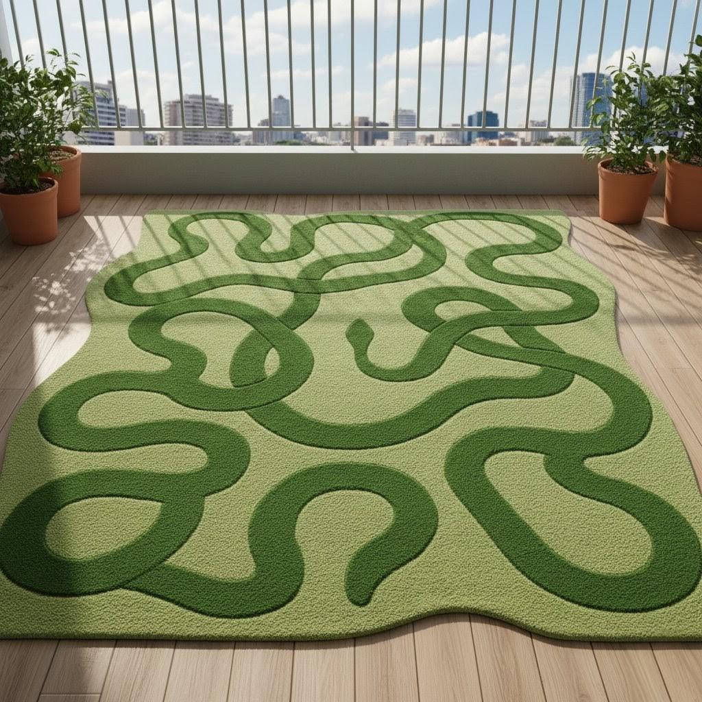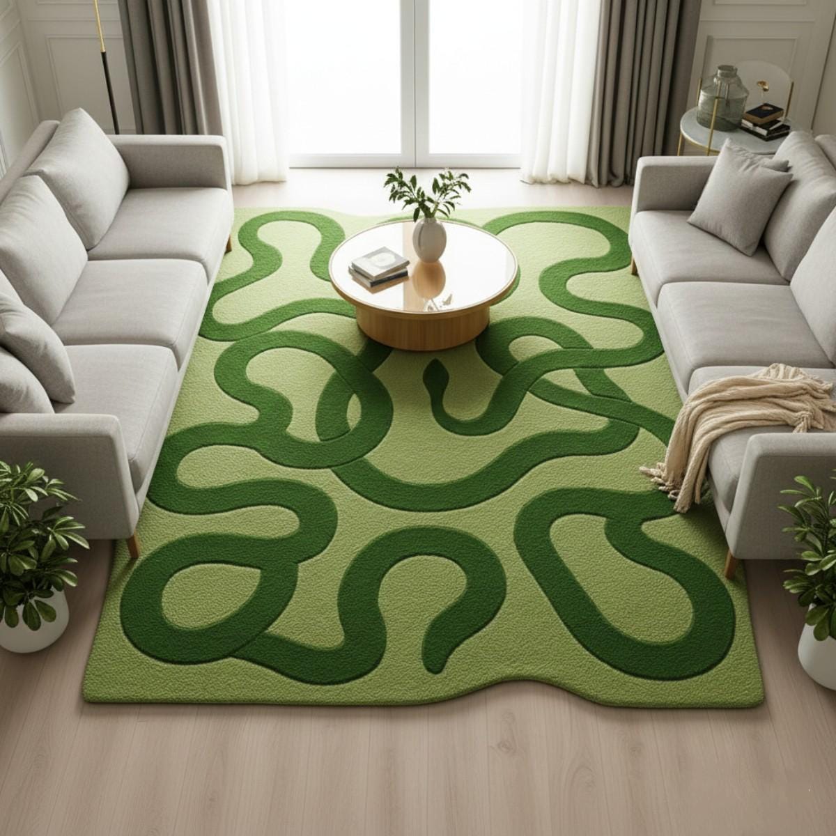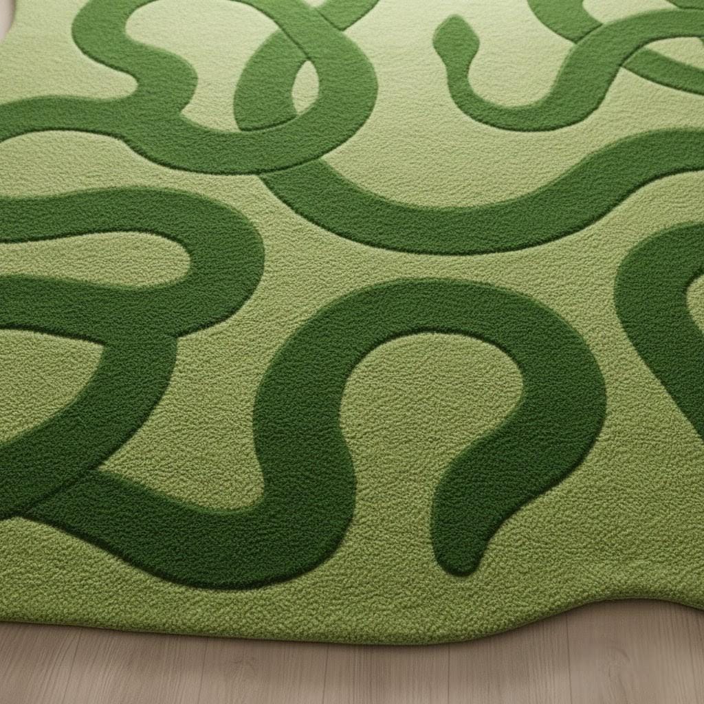 Modern Green Abstract Wavy Rug – Soft Custom Shaped Floor Carpet | Aesthetic Living Room & Bedroom Decor | Unique Handmade Tufted Area Rug