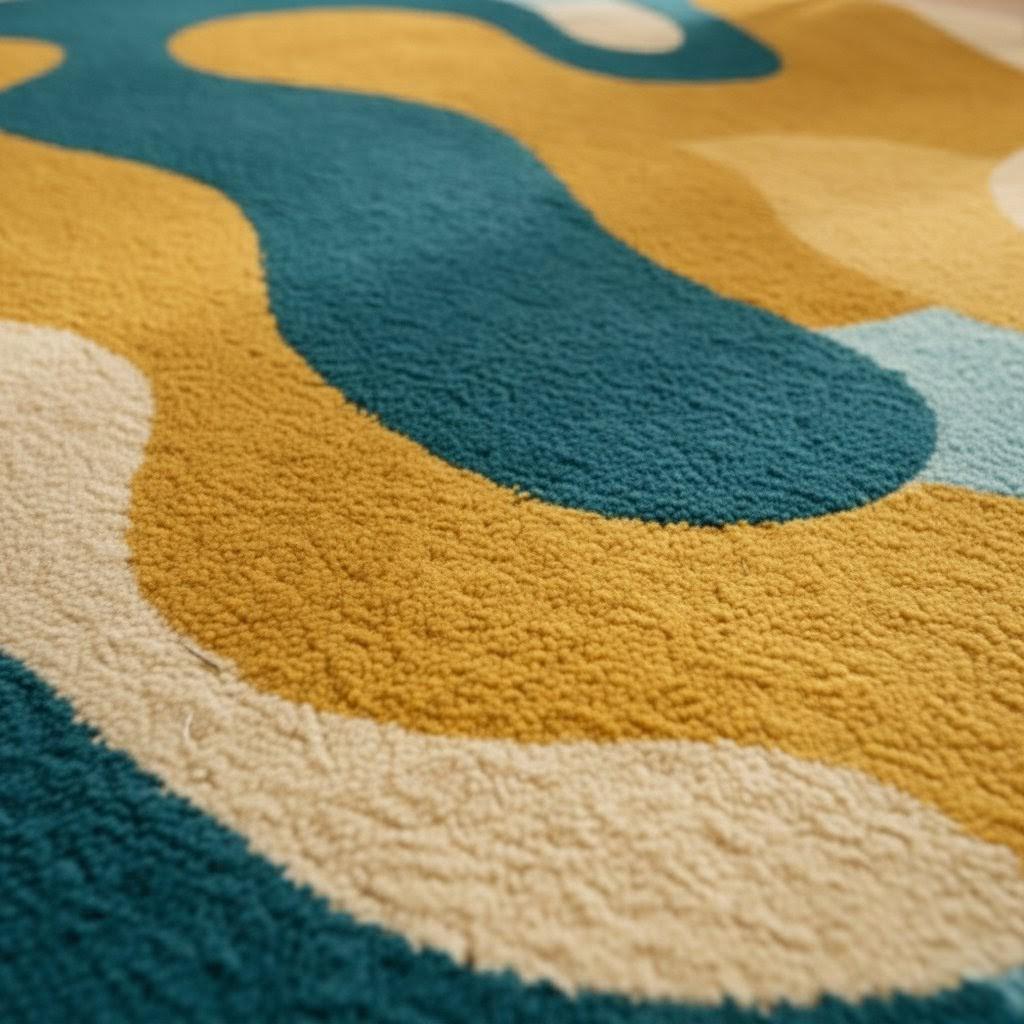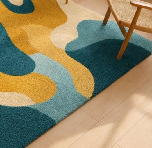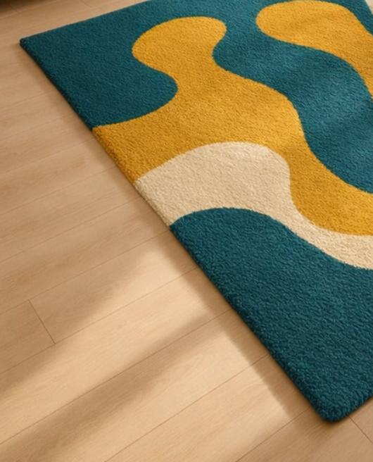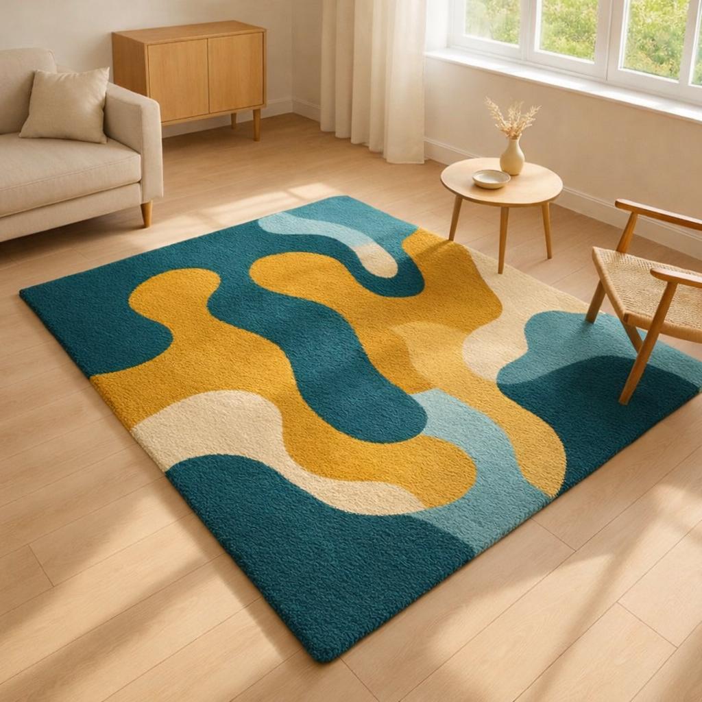 Abstract Modern Area Rug – Teal & Mustard Wavy Pattern Carpet, Minimalist Contemporary Floor Rug for Living Room Bedroom by cozy Carft RUGS