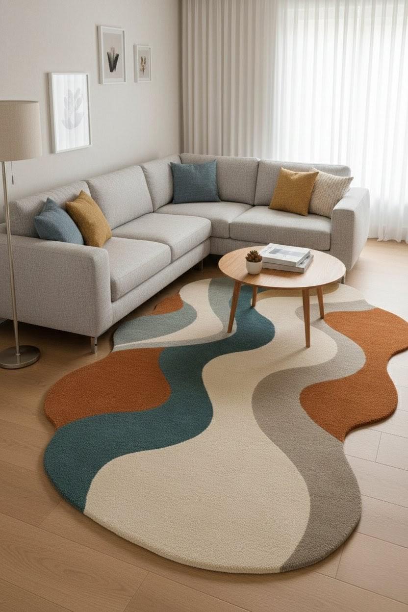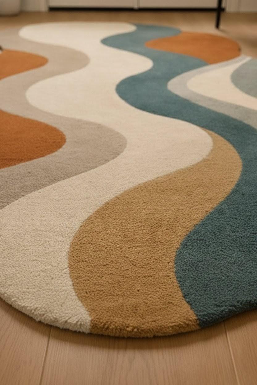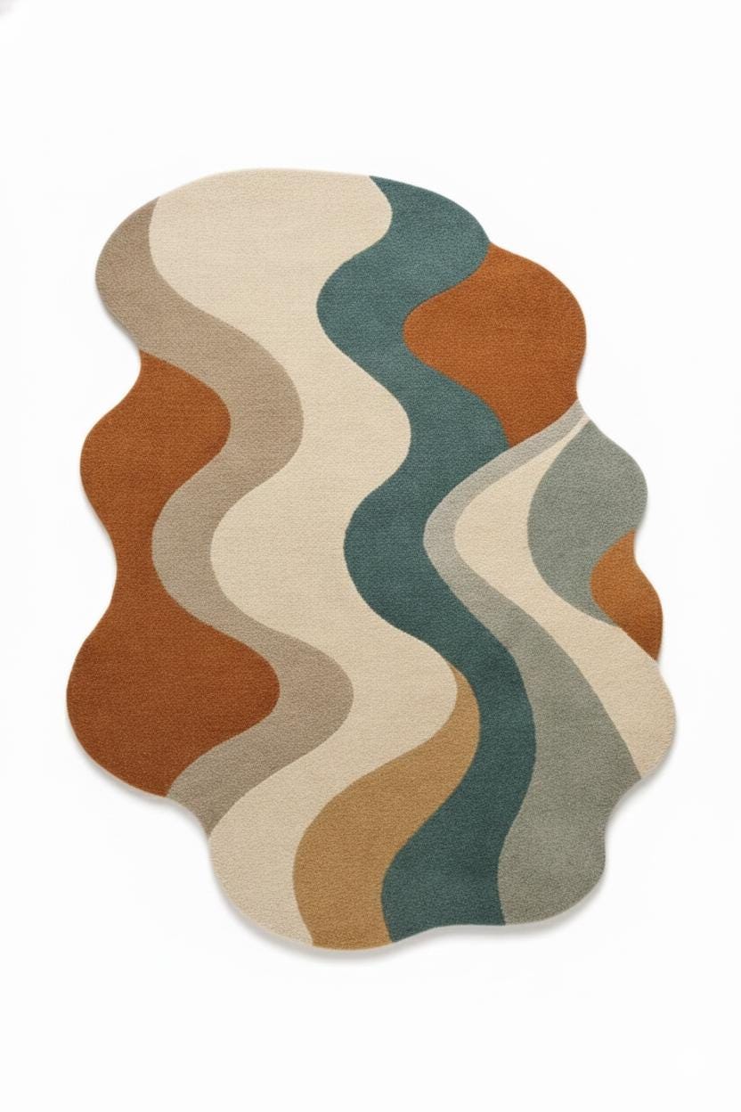 Yeh modern abstract wavy area rug un logon ke liye perfect hai jo apne home decor me unique aur artistic touch lana chahte hain. Is carpet ka organic free-form shape aur flowing wave pattern room ko instantly stylish aur cozy bana deta hai.