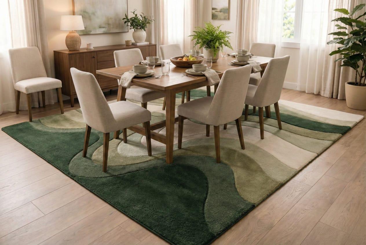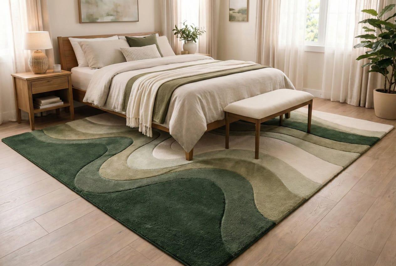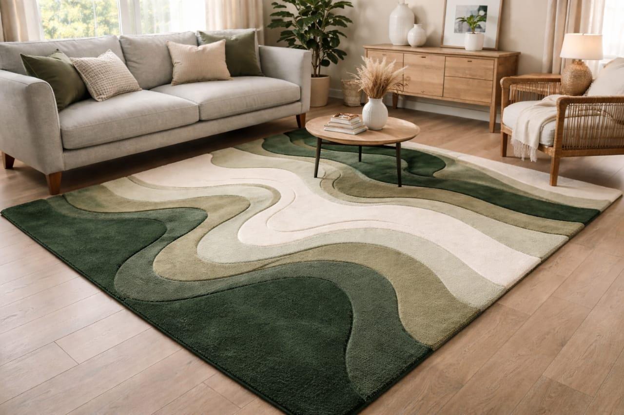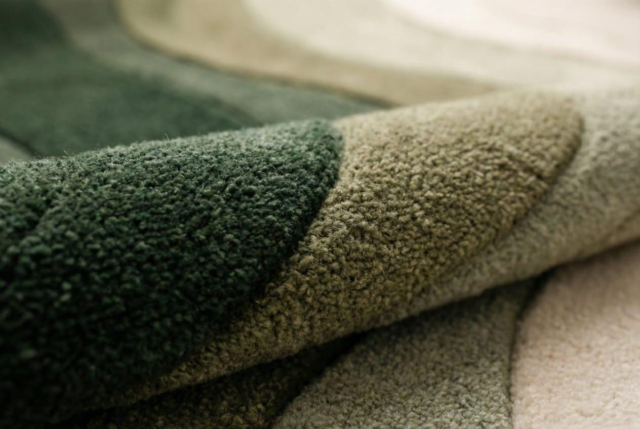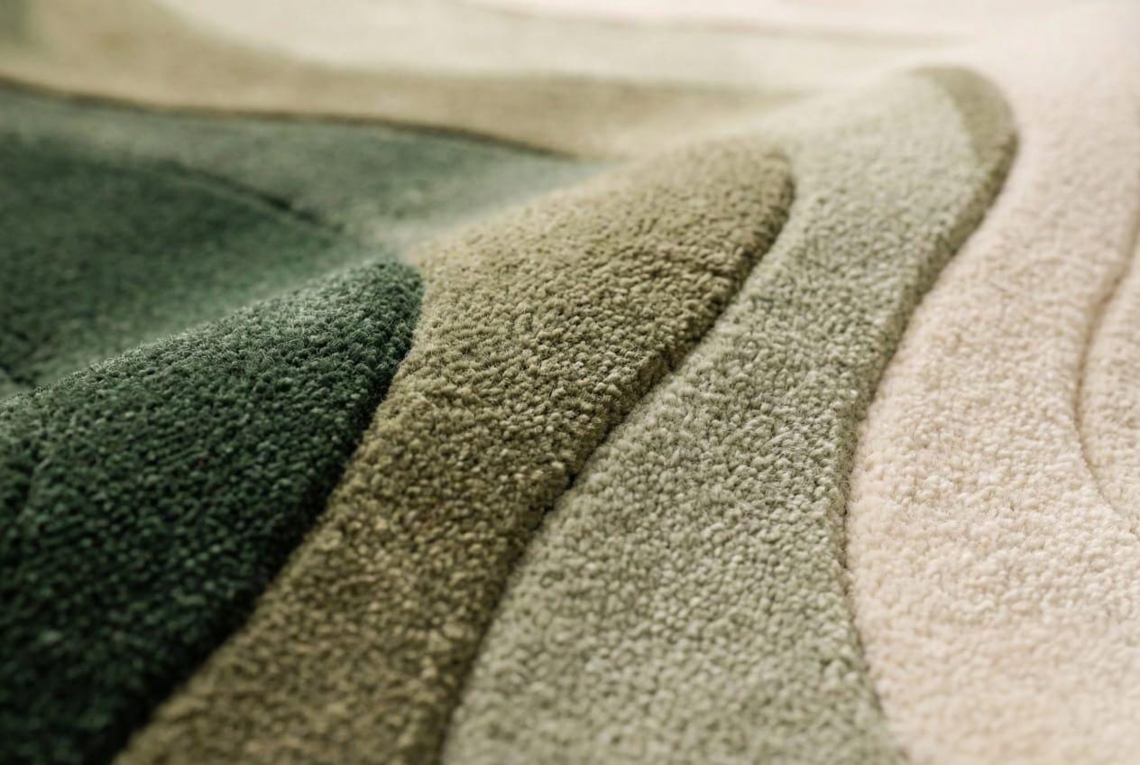 Hand-Tufted Wool Blend Rug, Sculptural Green Landscape Design
