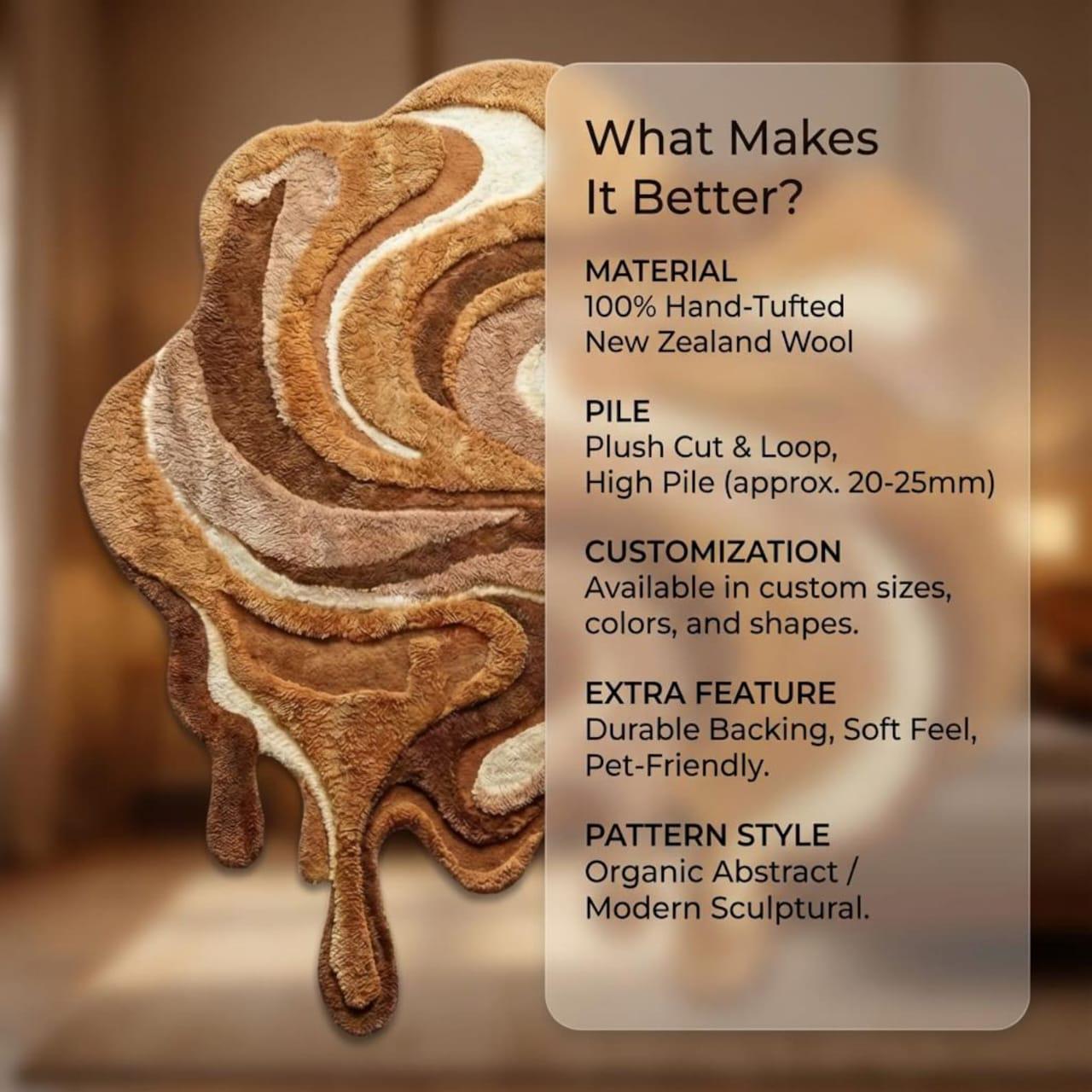 Hand Tufted Wool Rug, Organic Abstract Sculptural Carpet