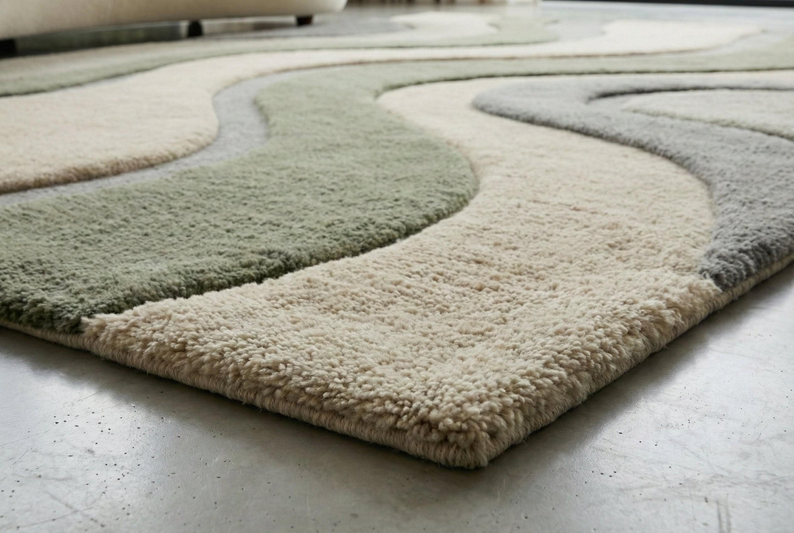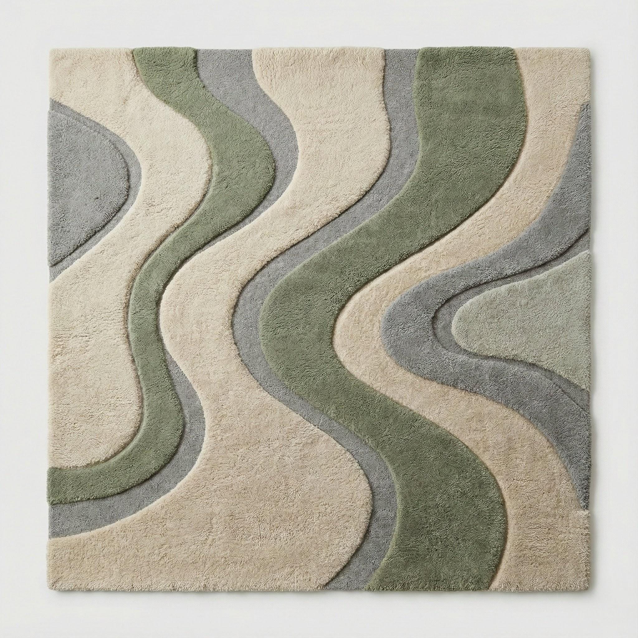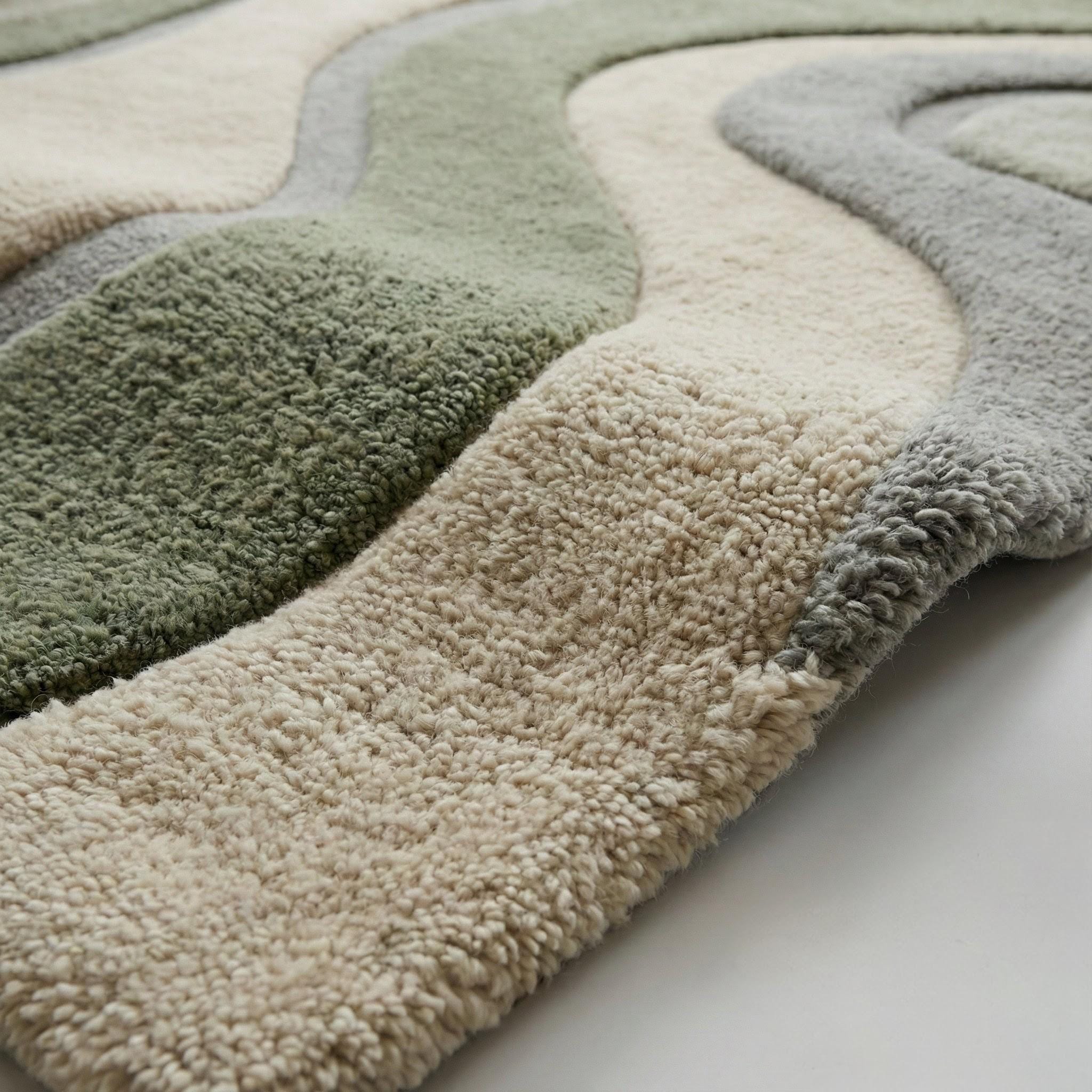 Hand Tufted Wool Area Rug: Sage Green Wavy Design, Plush Cozy Decor