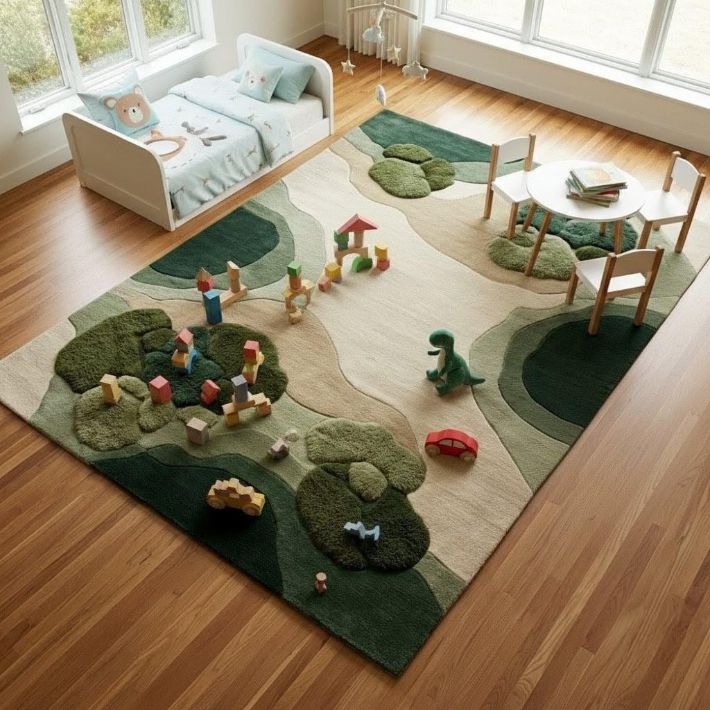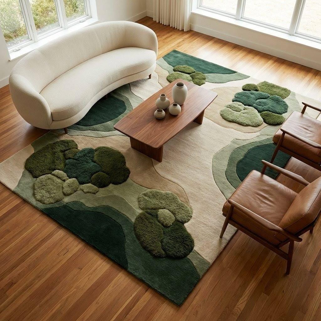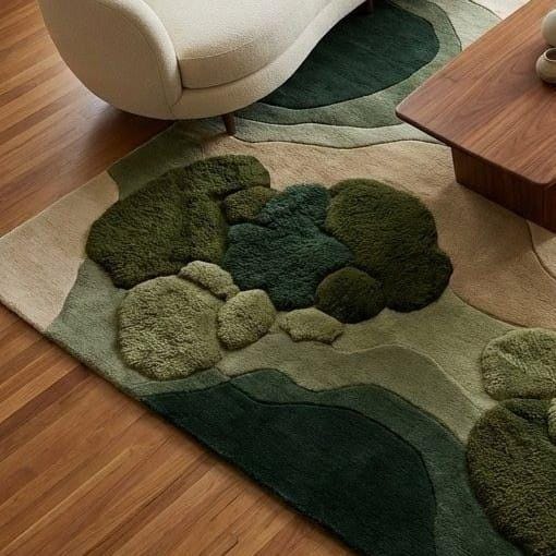 This rug is more than décor—it is a sculptural landscape translated into textile art. Inspired by rolling moss hills, layered forest canopies, and organic topography, this hand-tufted masterpiece transforms your floor into a serene, nature-driven retreat.