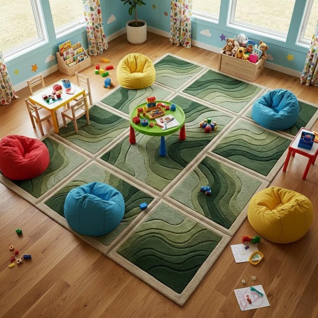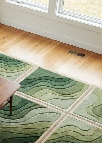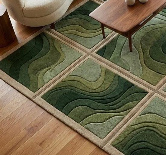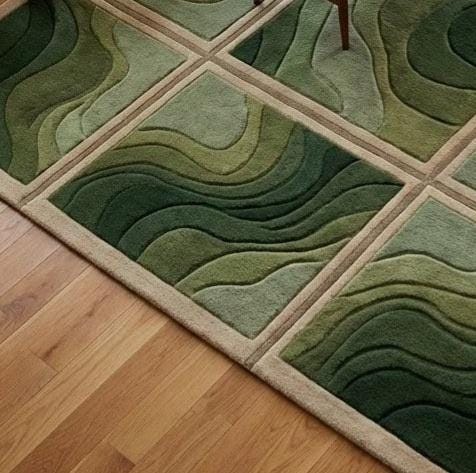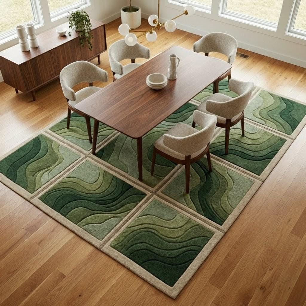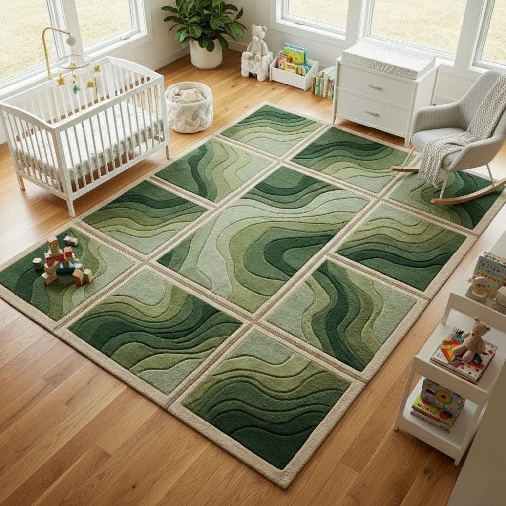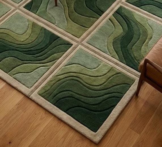 💫This rug is a celebration of movement, harmony, and modern artistry. Designed in a captivating grid of square panels, each section reveals flowing, organic waves in layered shades of deep forest, moss, sage, and soft olive green. The sculpted lines echo rolling hills, wind-swept fields, and tranquil topographic landscapes—bringing a sense of serenity and visual rhythm to your space.