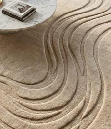 Inspired by the natural flow of contour lines found in landscapes and topographic maps, this sculpted wool rug transforms your space into a curated design masterpiece. The soft, layered wave pattern creates visual movement while maintaining an elegant, minimalist presence. Its warm beige and sand-toned palette brings effortless harmony to both modern and mid-century interiors.