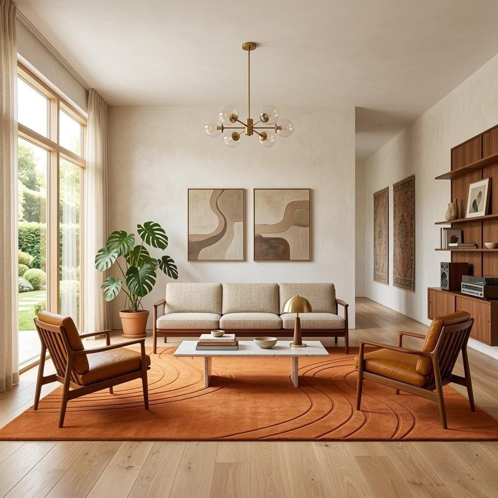 • Living Rooms – Pair with walnut or oak furniture and neutral sofas for a warm mid-century aesthetic.