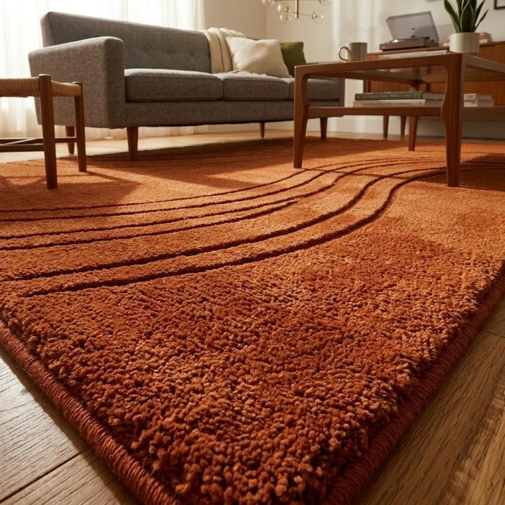 Burnt Orange Wool Area Rug Mid Century Modern Hand Tufted Sculpted Abstract Rug Terracotta Living Room Rug Plush Luxury Carpet 8x10 9x12 Custom