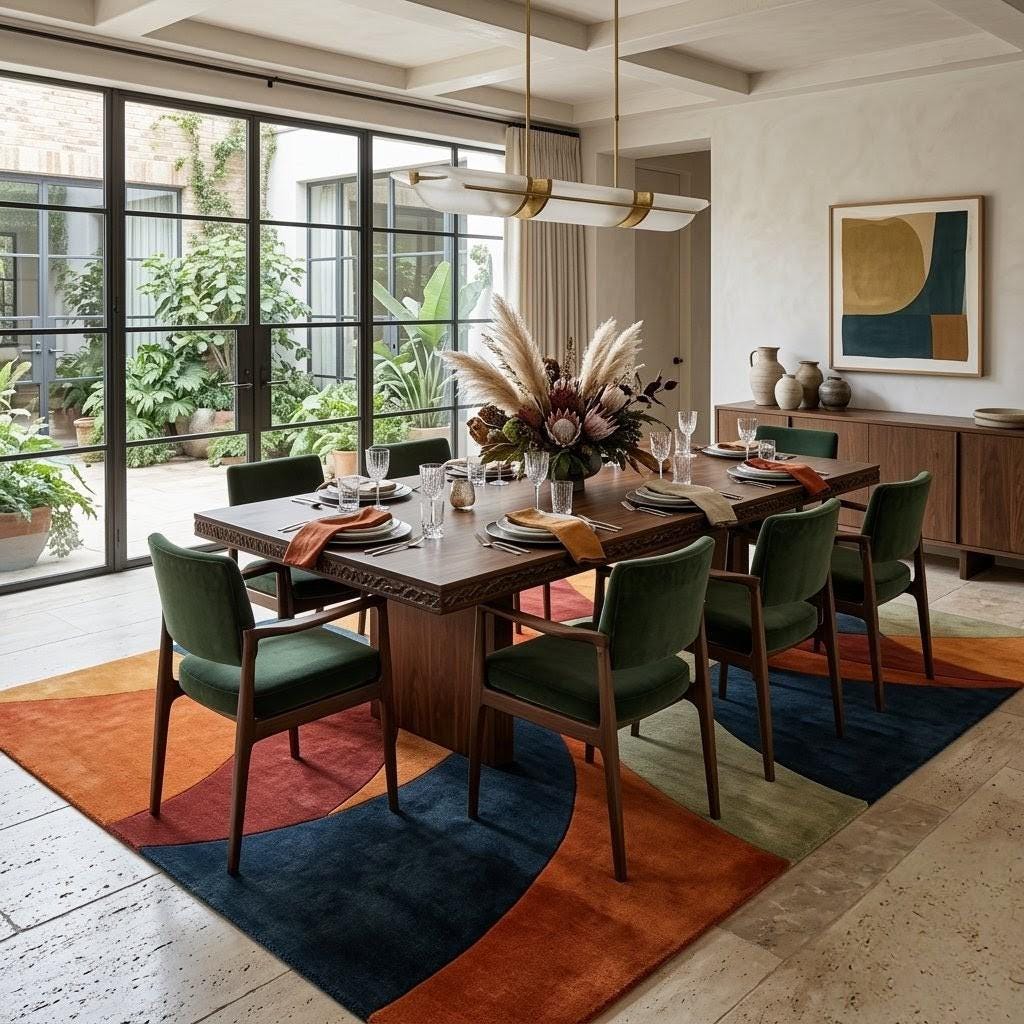 • Living Room – Anchor a sofa and coffee table to create a bold focal point.