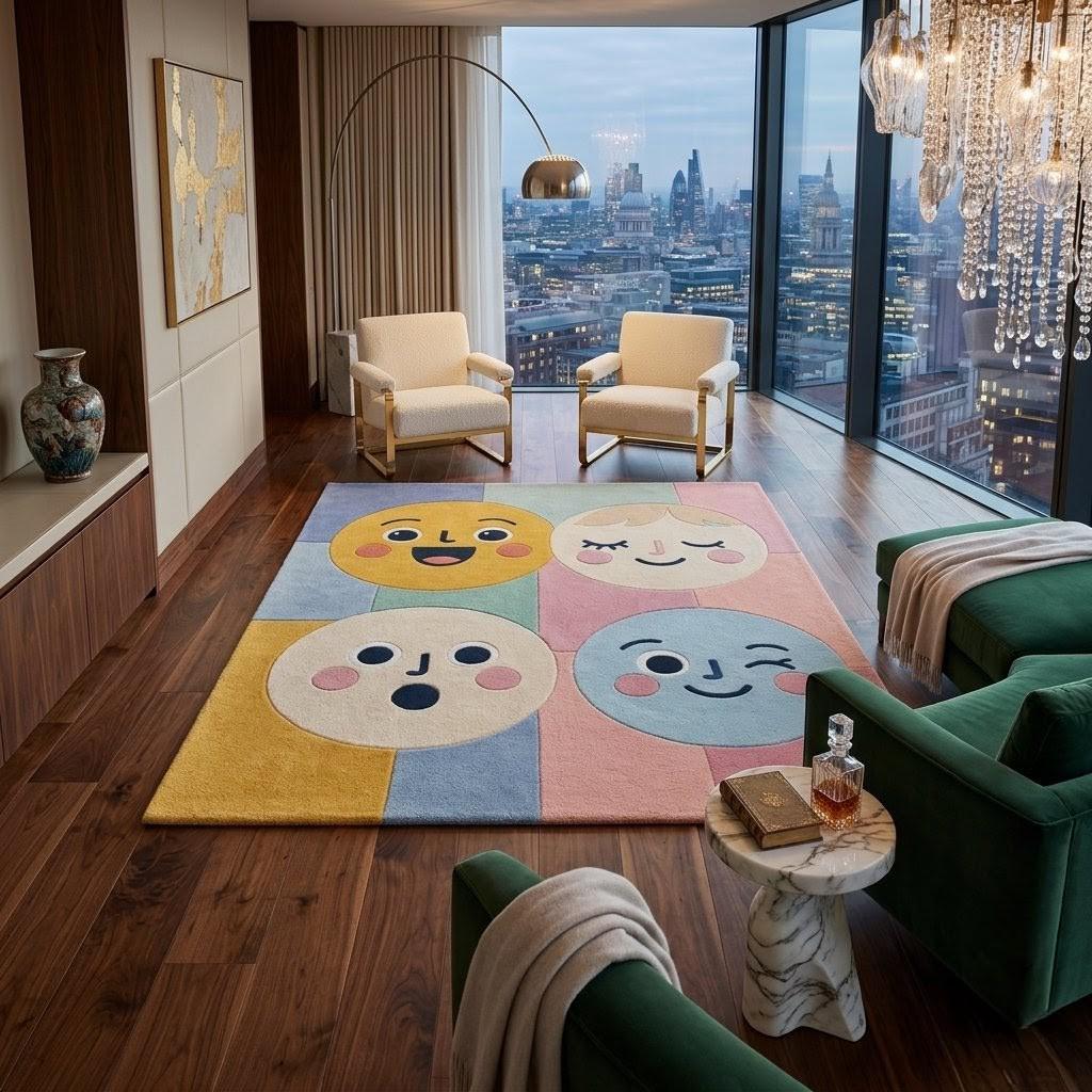 Bring joy, color, and personality into your space with this playful smiley face rug. Designed to spark happiness, it transforms any room into a warm, creative haven.