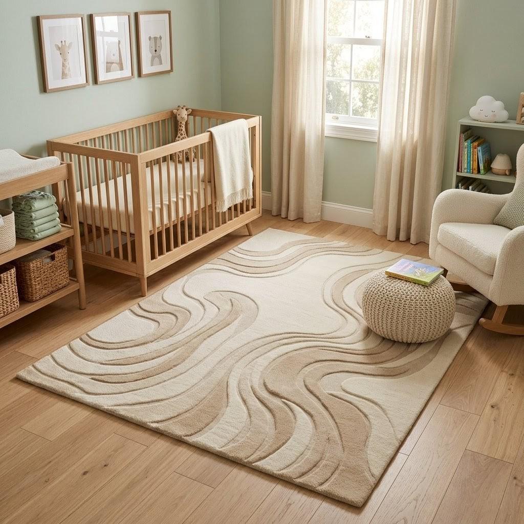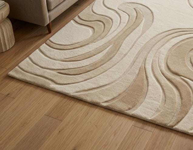Keywords: hand tufted rug, wool rug, abstract rug, beige rug, cream rug, modern rug, minimalist rug, scandinavian rug, neutral rug, living room rug, bedroom rug, nursery rug, large area rug