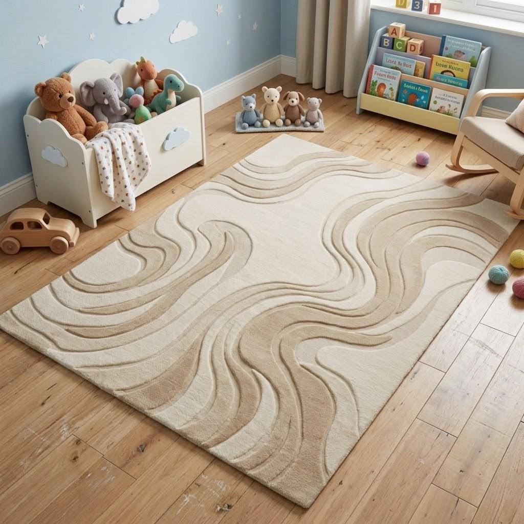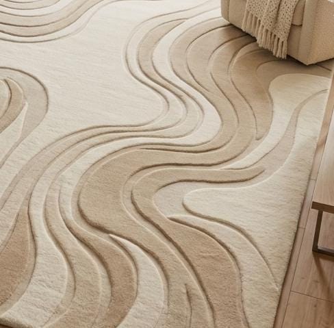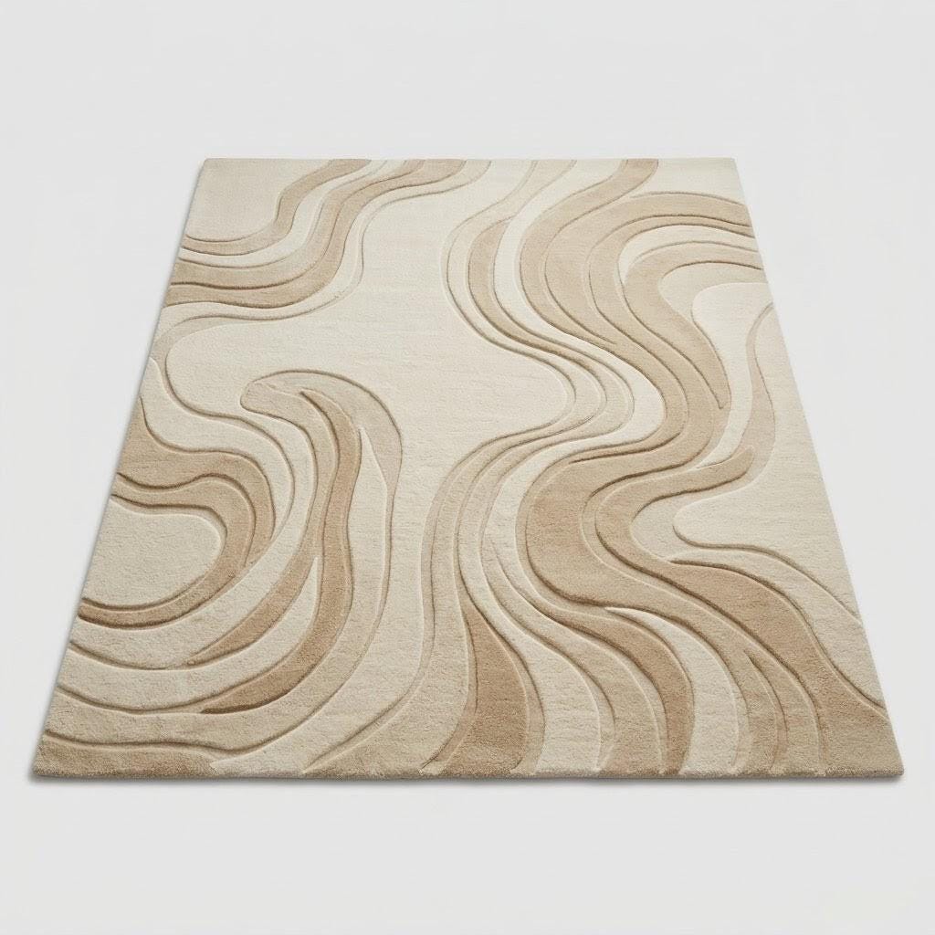 Elevate your space with this handmade hand tufted wool rug, designed with soft abstract waves that bring warmth and elegance to any room. Perfect for modern, minimalist, and Scandinavian interiors.