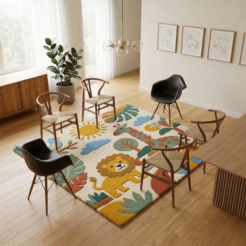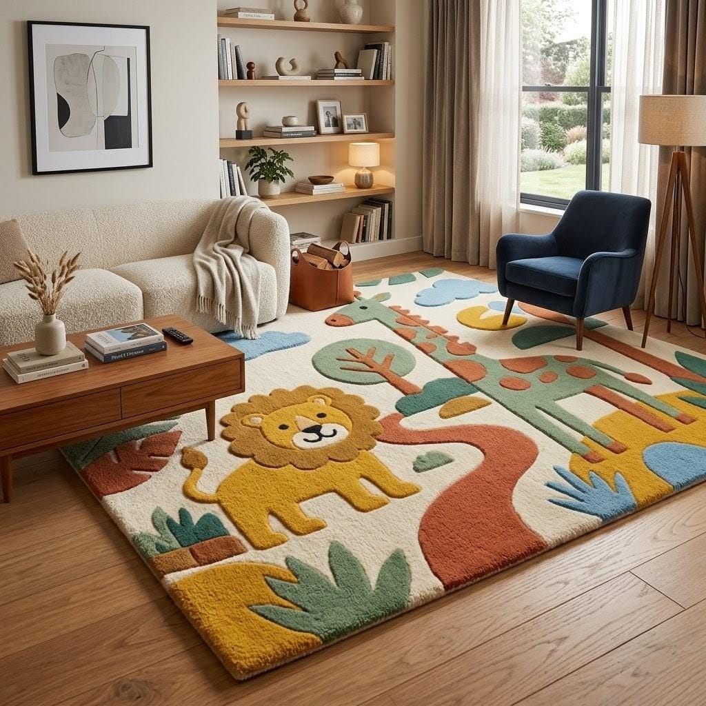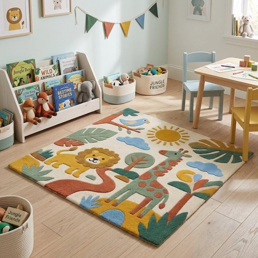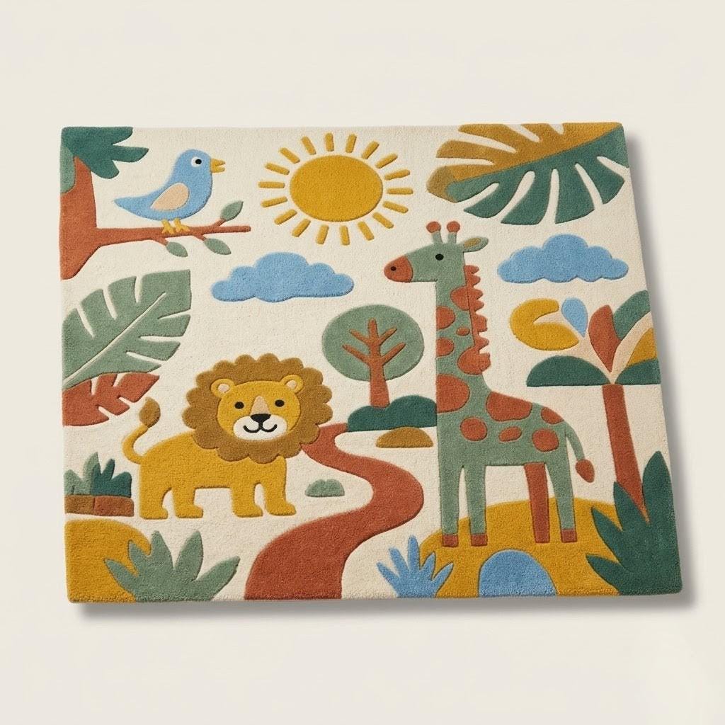 Transform your little one’s room into a whimsical sanctuary where imagination takes center stage and every step is met with plush, artisan comfort. This handcrafted jungle scene brings a warm, tactile magic to your home, creating a cozy foundation for years of play and discovery.