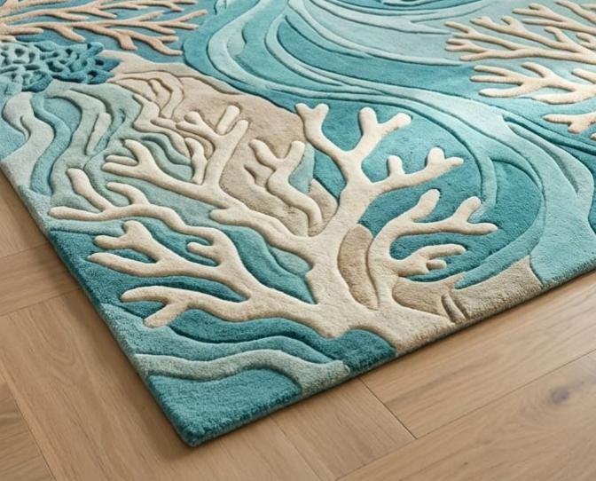 Hand Tufted Wool Coral Rug – Blue Teal 3D Textured Coastal Area Rug