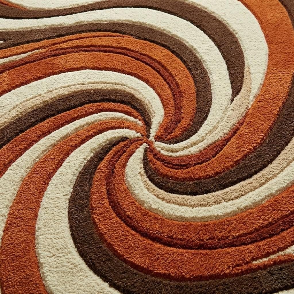 Mid Century Modern Abstract Swirl Rug, Rust Orange Brown Cream Wool Hand Tufted Rug, Retro Living Room Carpet, Custom Size Available