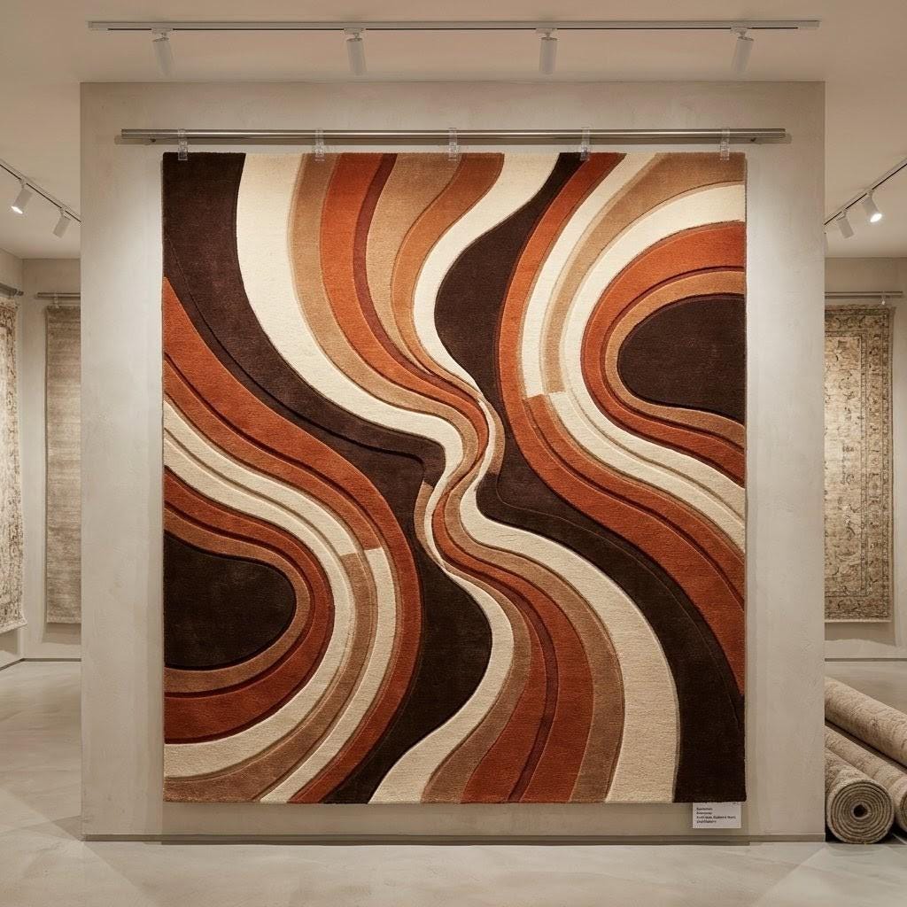 Bring warmth, movement, and artistic character into your home with this sculptural wavy wool rug in rich earthy tones. Its retro-inspired curves instantly elevate interiors, making any room feel curated, cozy, and designer styled.