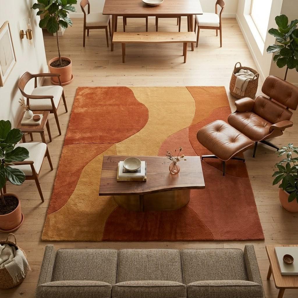 Abstract Hand Tufted Wool Rug, Modern Terracotta Area Rug, Mid Century Organic Shape Carpet for Living Room Bedroom, Custom Size Available